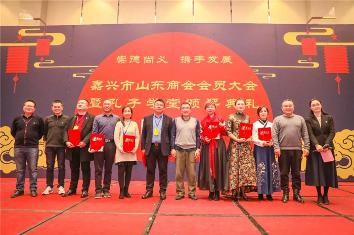 12月15日晚,嘉兴市山东商会年会暨孔子学堂颁奖典礼在富悦大酒店隆重举行。现场表彰了2019年度优秀常务副会长、副会长、理事、会员,颁发了首届“好媳妇”以及优秀孔子学堂、孔子学堂优秀表率、最佳表率等奖项。广大商会会员、山东籍乡贤、嘉宾、嘉兴市各异地商会代表、部分兄弟山东商会代表以及孔子学堂部分师友共700多人参加活动。
